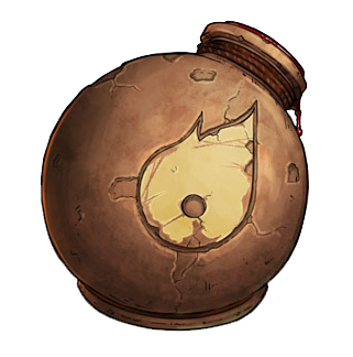 A ceramic or metal ball containing two alchemical mixtures. On a hit, the two substances mix and produce a large yellow cloud of smoke. This effect functions as a 1st level fog cloud spell.