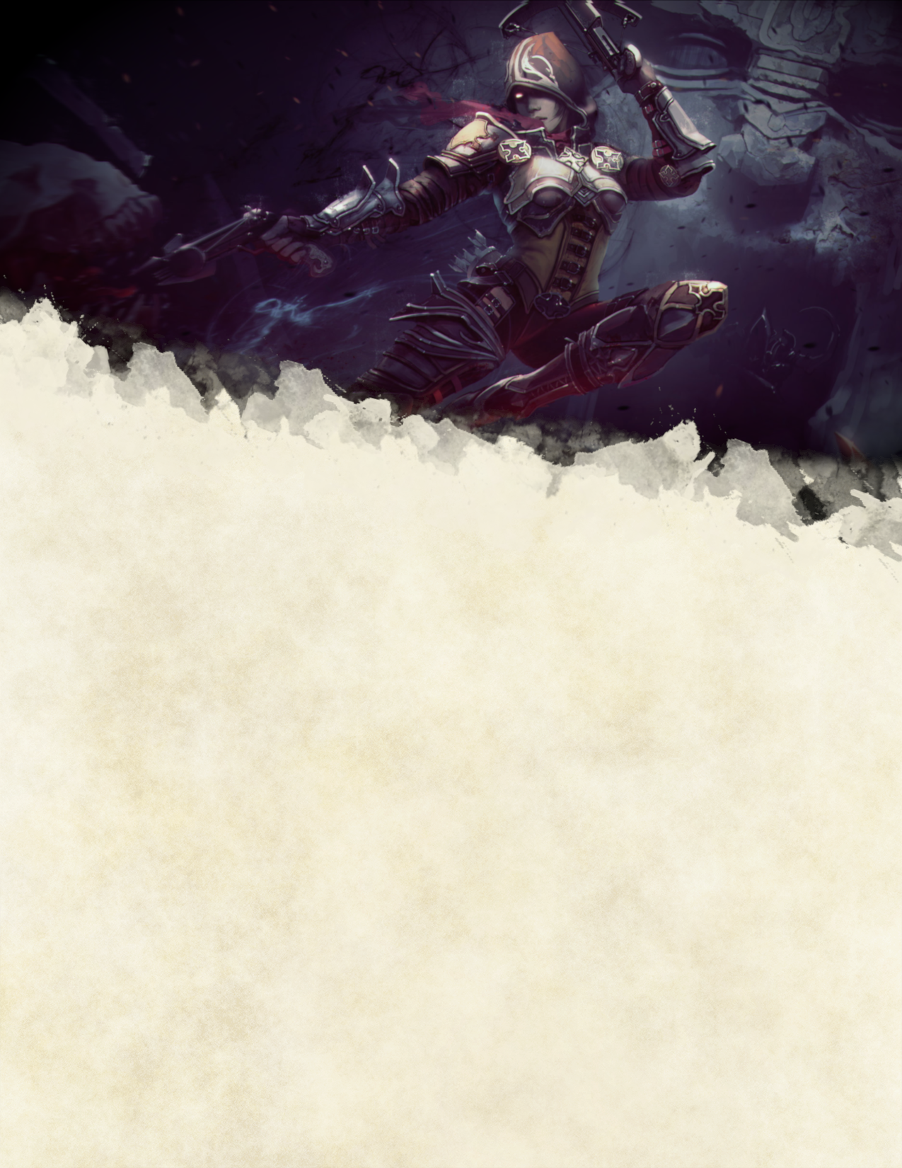 Relentless in their pursuit of vengeance, demon slayers seek to purge the world of all that is vile and unholy. Initiates of this order are taught a ranged fighting style, skillfully keeping their foes at bay. Though deemed "demon slayers," they prey upon all that is strange and wicked, be it aberration or monstrosity.
