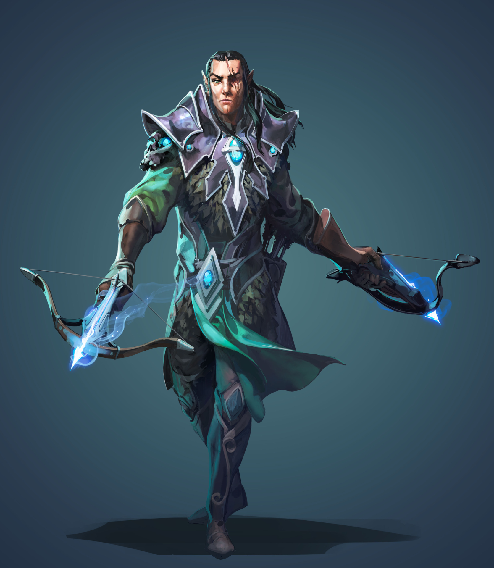 Karil the Tainted is the most agile of the brothers and wears magical leather armor. He attacks with a massive crossbow that can fire several times before needing to be reloaded and drain the agility of his enemies.