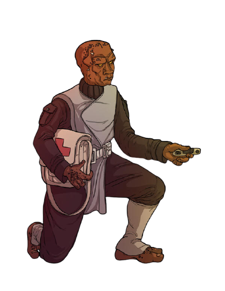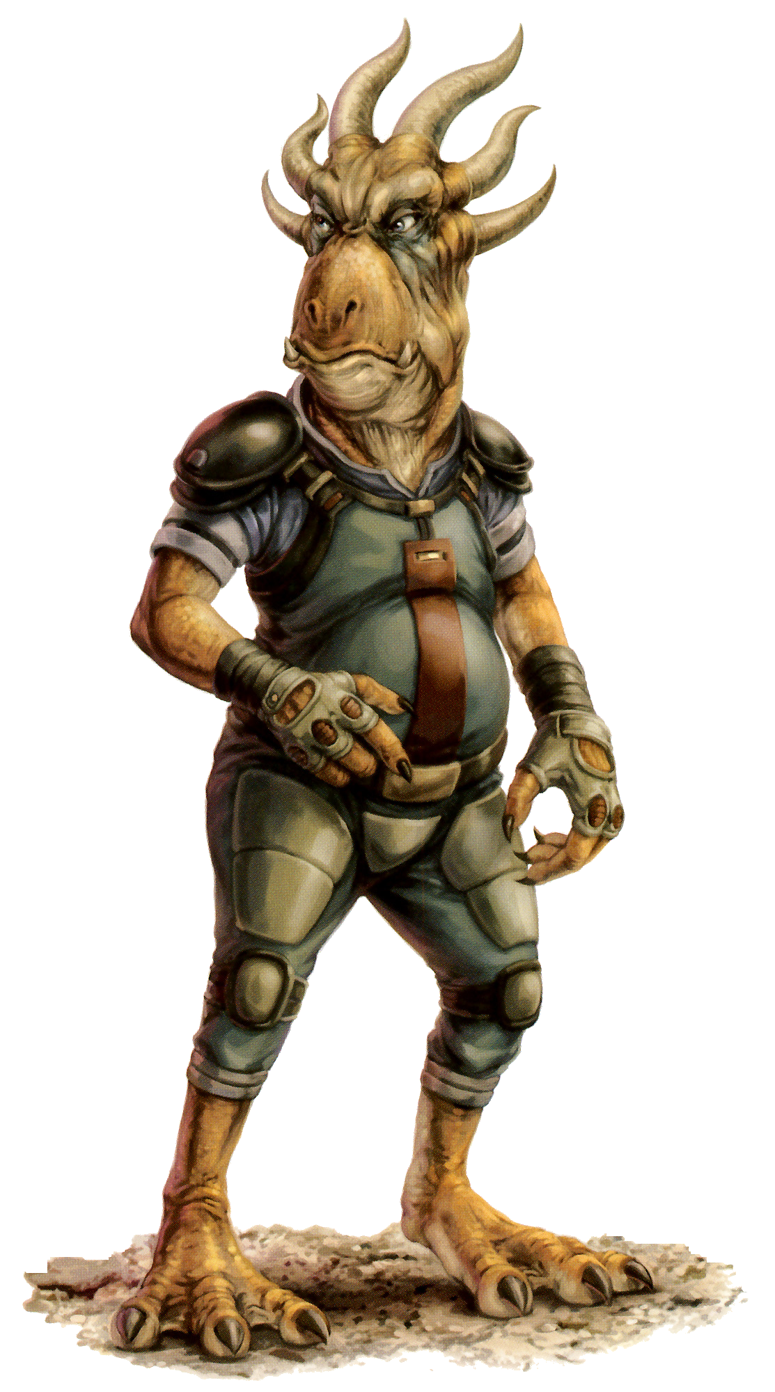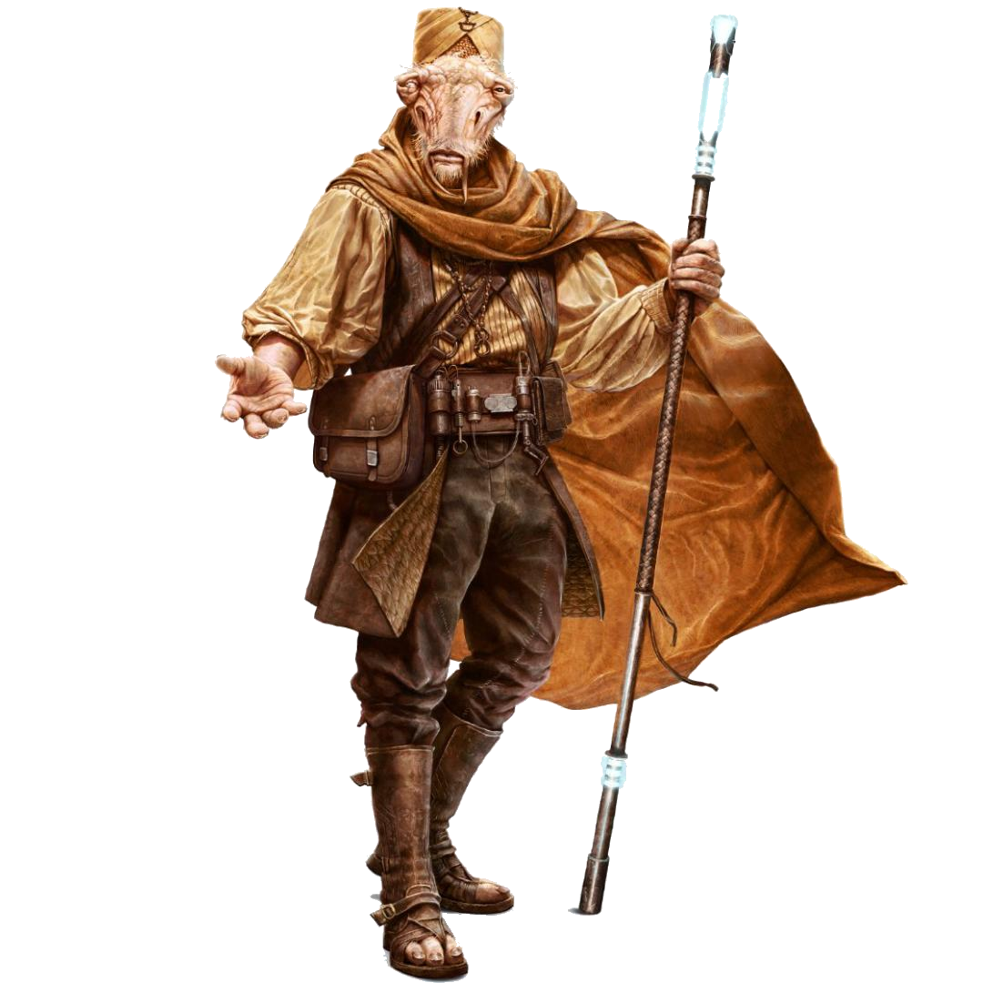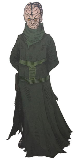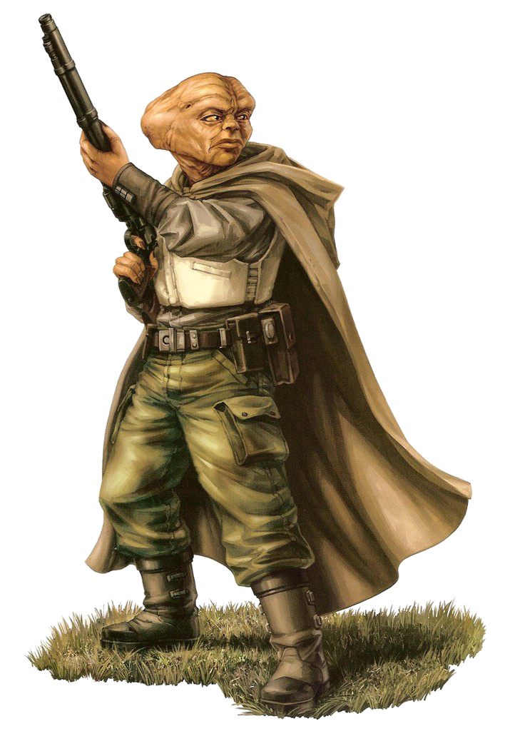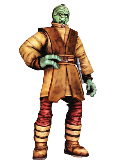 Yinchorri, or yinchori, are sentient, reptilian humanoids with sturdy constitutions. The species is turtle-like in several respects, such as the head. The yinchorri body is covered by thick skin, giving them greater endurance than humans, and they are more resistant to heat because of their cold blood. The species is divided into two breeds: The Intelligentsia, who perform governing tasks, and the warrior caste, who are known to use violence in response to threats. No matter the breed, all the yinchorri have a natural resistance to the mind-controlling uses of the Force, due to an adaptation of their Midi-chlorians which cause the symbionts to generate Force-devoid bubbles around their hosts.