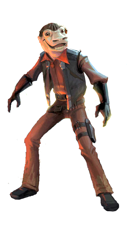 Xamsters are a species of sentient reptiles characterized by their large ears and bicuspid beaks. They have scaly skin, which sport several spiky crests. They have formidable claws and fangs, and their brains are capable of quickly and efficiently processing sensory input.