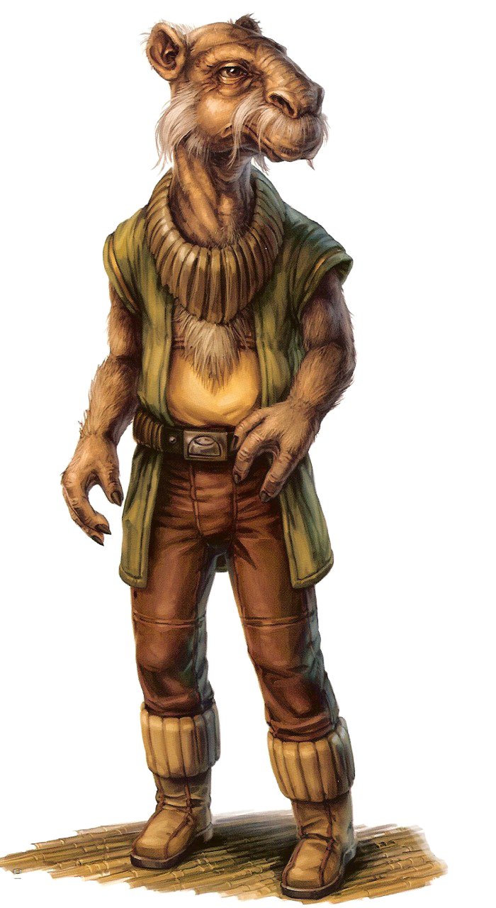 A bipedal mammalian species descended from hoofed ungulates, the yarkora evolved into a tall species with a long snout with wide nostrils, smooth fur, and rough tufts of hair. The yarkora possess two stomachs, one for digesting and the other for storing food, and multiple redundant organs that account for their longevity. Because of this redundancy, it is rare that a yarkora will die of natural causes and makes internal injury extremely treatable and non-life threatening. Having incredible eyesight and hearing abilities, some scientists believe they are also able to project empathetic abilities onto others, possibly identifying the species as highly Force-sensitive.