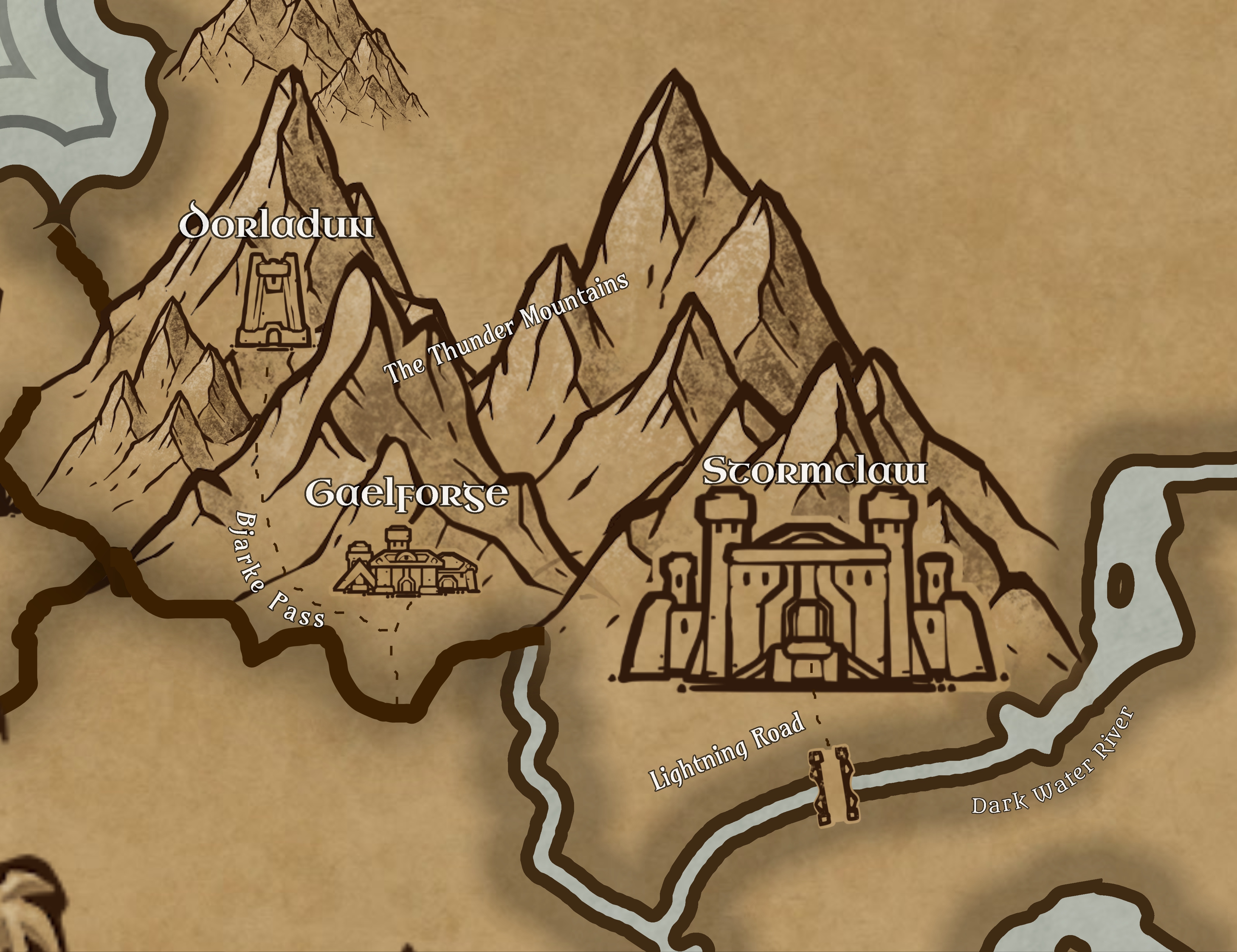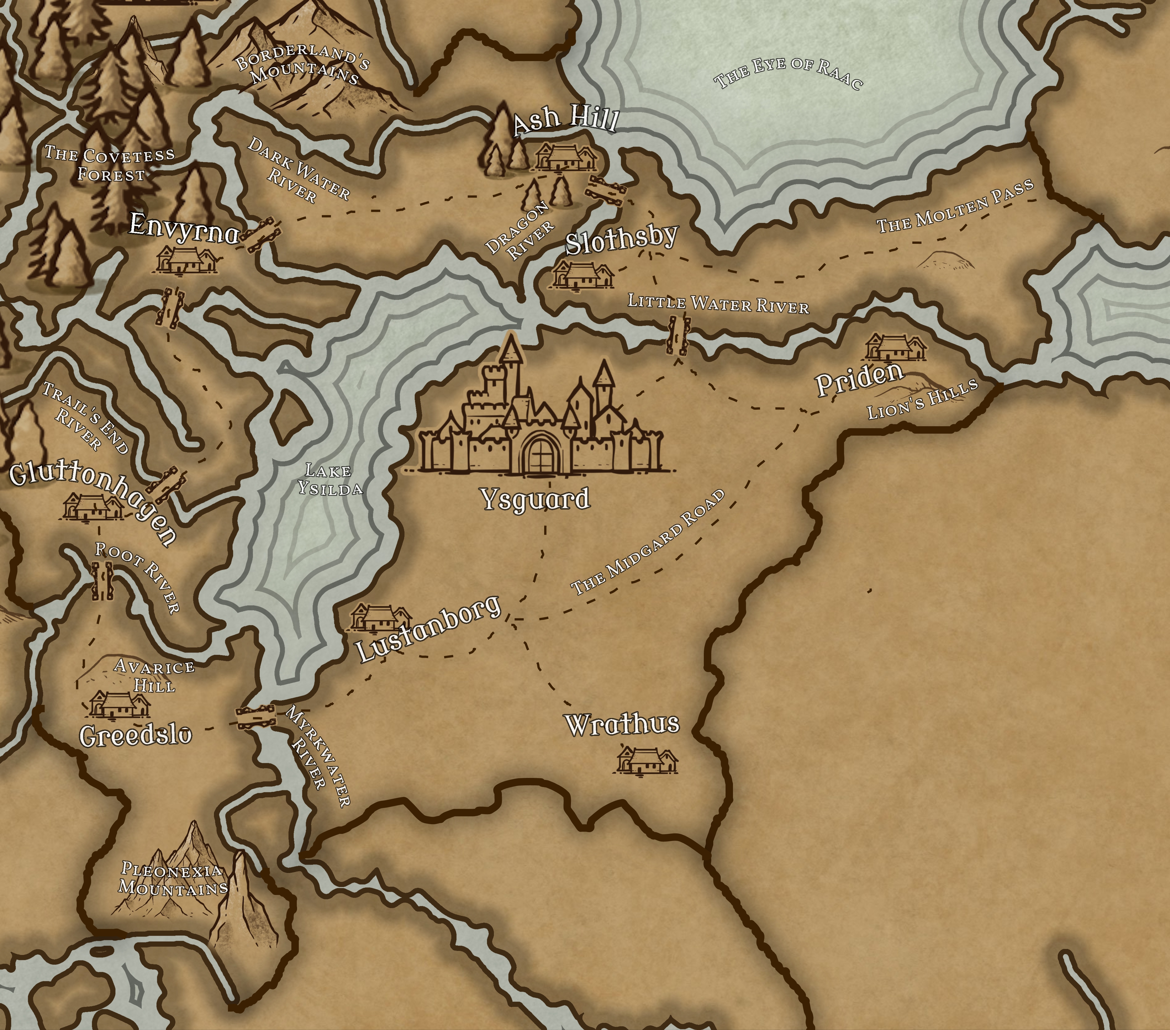 When approaching Keska you should think of Scandinavia. Its culture and architecture heavily influenced by Denmark, Sweden and Norway. It has large forests of pine, birch and spruce trees. To the northern region it is mountainous when not bordered by the great whirlpool called the eye of Raac and everywhere else in the land is full of fertile grasslands and rivers making it prime for farming and travel. The weather in Keska is mostly temperate with light snowfalls in the winter and mild summers. Mostly the people here live the peaceful lives of craftsmen. Though from time to time the orcish tribes have been known to raid smaller villages and the green dragons that stalk the forested areas are known to hunt travelers . Keska is a monarchy that has been ruled by the Bloodaxe line for generations, though its major cities are stewarded by Jarls. Being full of craftsmen it exports a lot of goods to the other realms and is a central hub for commerce and trade. Its many rivers flow out to all of the other realms allowing for swift travel to and from it.