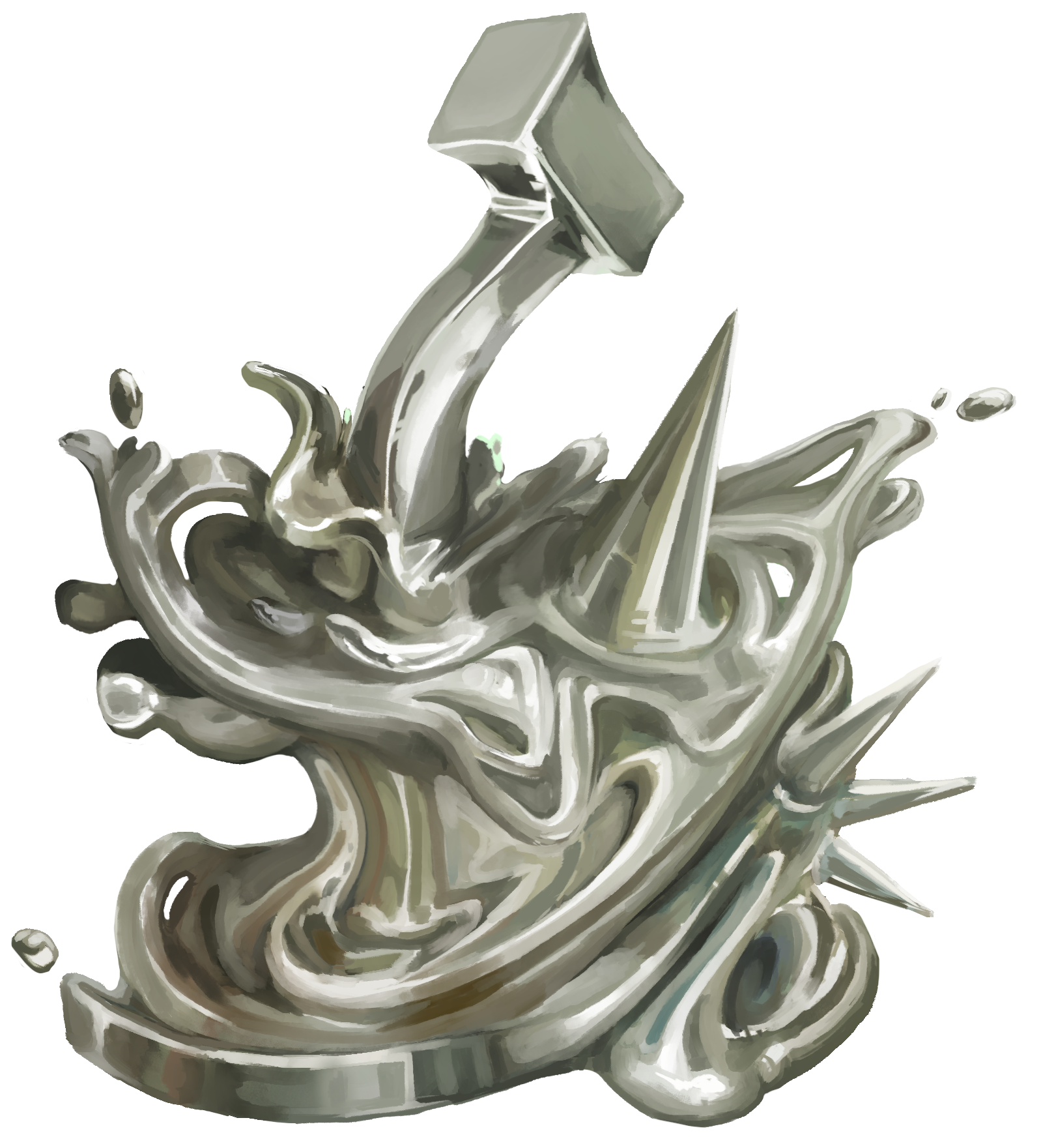 Deep beneath the surface of the known world, cavities of the earth are filled with ancient enigmatic creatures. These particular oozian specimens were once mundane single-celled organisms spawned from demonic magic eons ago, however after exposure to dribbling quicksilver from one of the veins of the earth, these slimes would undergo a total metamorphosis, transmogrifying their physiology into that of an animated blob of liquid metal.