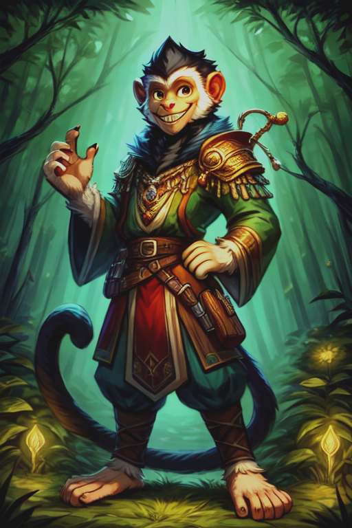 Chipi are a small primate race, typically with slender bodies and limbs with long, narrow hands. They are generally around 3 feet in height and weigh about 25lbs. A 4 foot tall Chipi would be considered extraordinarily tall, and the length of their tails can often be equal to their stature. Their fur can be long and shaggy or short, and and tends to orange, brown, black, white, or a mix thereof. Their eyes may be large in relation to their head, and favor shades of green, orange, brown, or black. Chipi mature around age 15, and can live to around 75 years.