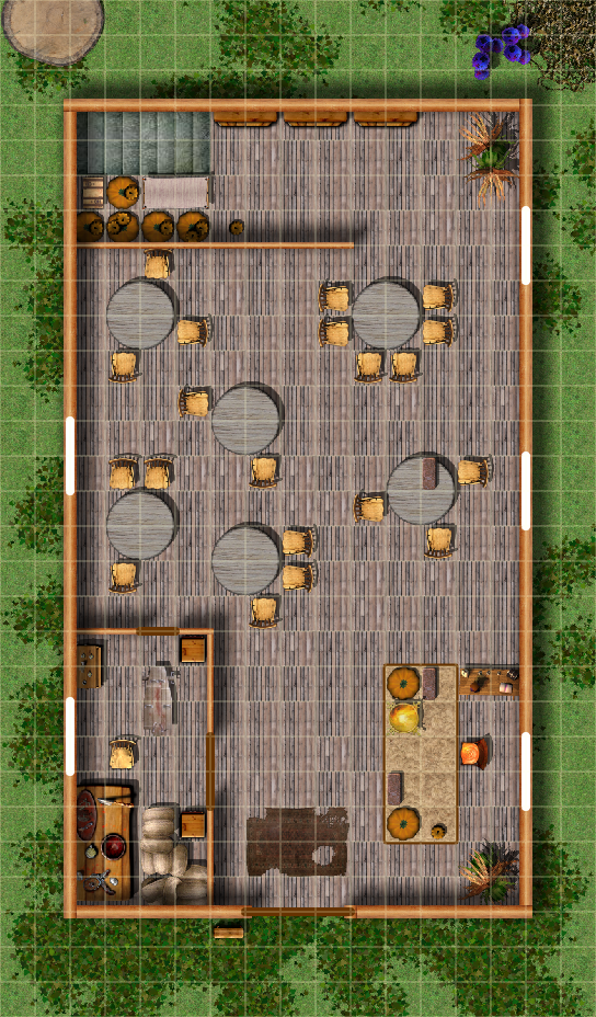 A group of travelers sits together as the only patrons at a rural Inn located between Yatar and Waterdeep. "Ma's Watering Hole" is a waypoint for merchants and travelers and is normally quite crowded in the evenings. This night the adventurers find themselves as the lone group of patrons at the Inn.