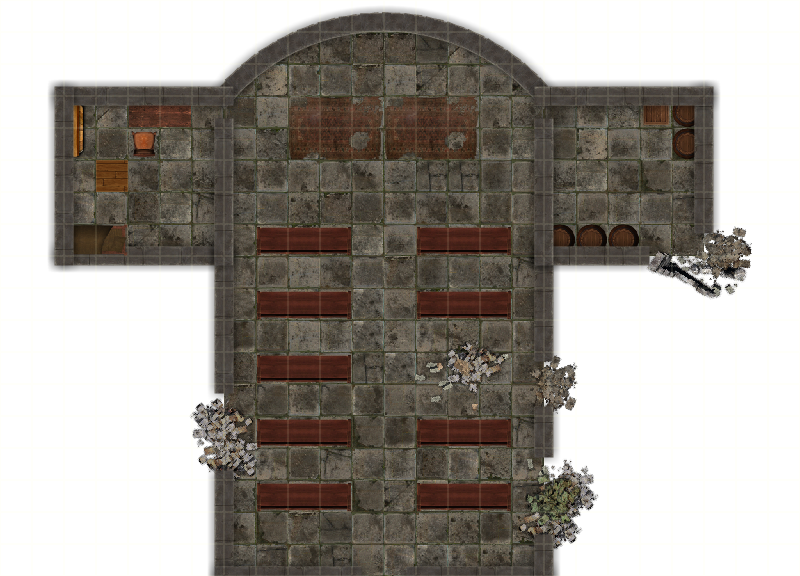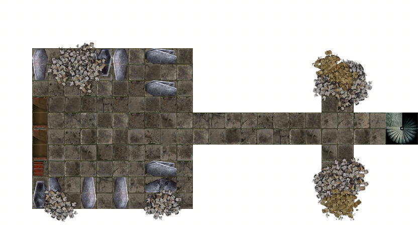 The tunnel is lit slightly by light coming through the cracks of a large door at the end of it. If the characters have alerted the occupants of the room of their arrival, they will attempt to ambush them at the door.