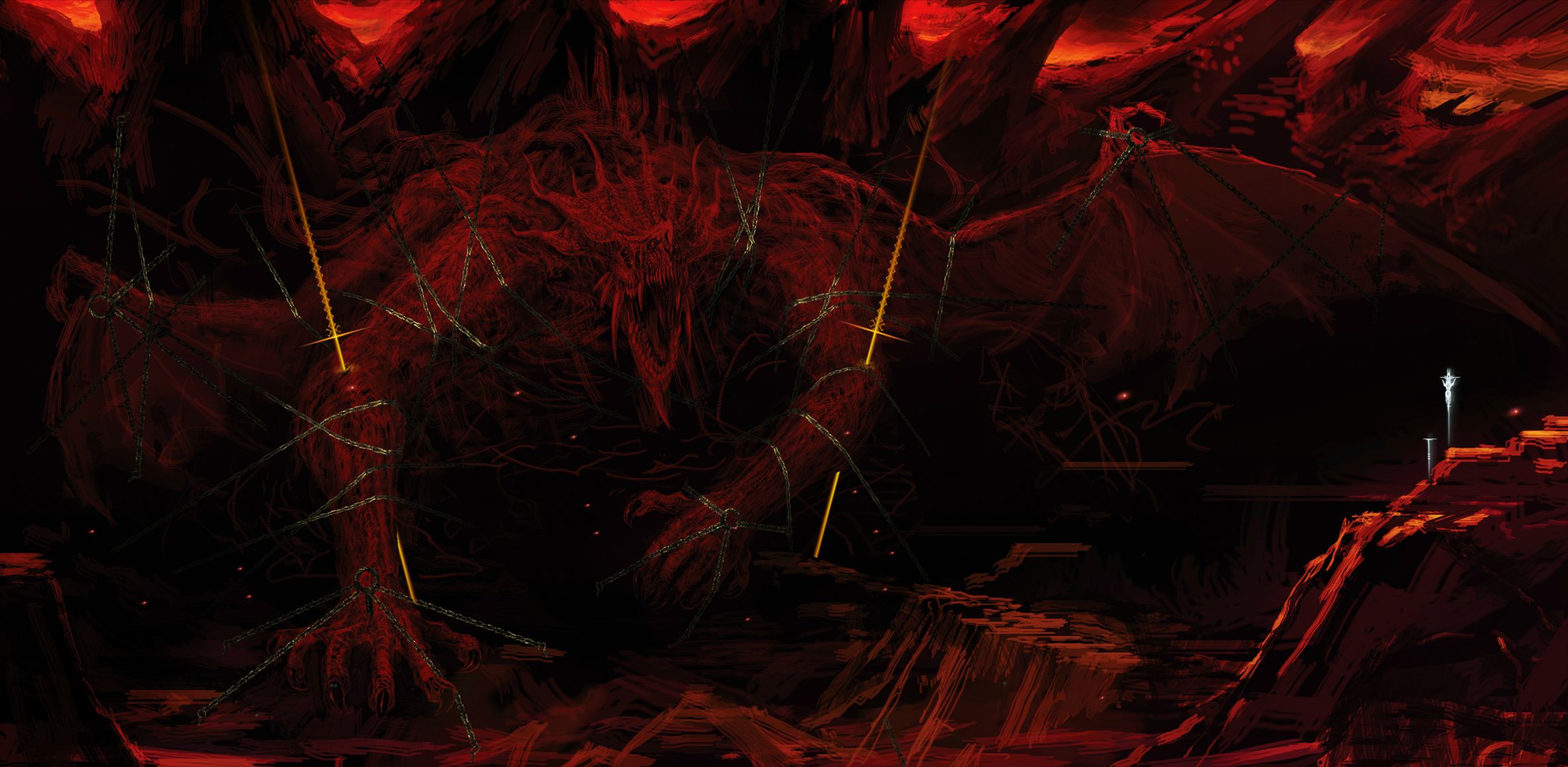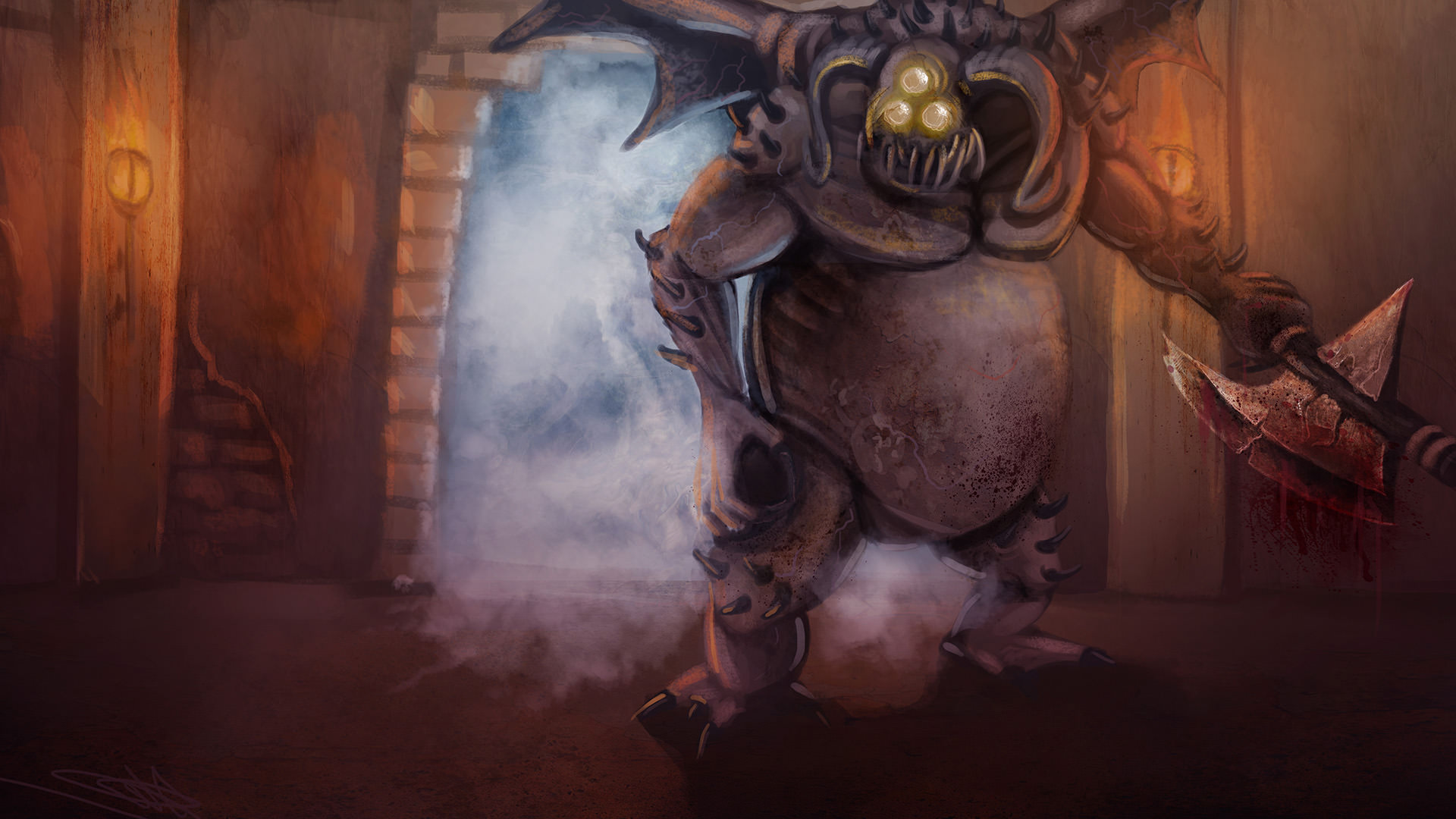 Greataxe clutched in its hand, the Vanguard stays true to its name and blocks the way for many Slayer of Demons. While not particularly fast, it makes up for it with powerful swings that could send most creatures off their feet. When up against many creatures, or one singular creature is eluding its slashes, it will uses its wings to lift off the ground momentarily, then sit on the creature, using its heavyset body to its favor. The wings aren't much good for anything else, as the Vanguard's body is too big to take off high in the air. So it's a mystery if the wings are specifically to use as a means of offense against slippery foes. Or, at one point, the Vanguard's physique was much slimmer, allowing the wings to be just a little more practical. Vanguard is one of the few greater demons to be found in multiple locations. One of which being the ever so mysterious Shrine of Storms. Unlike the other greater demons found there, though, it has no known connections to the Shadowmen.