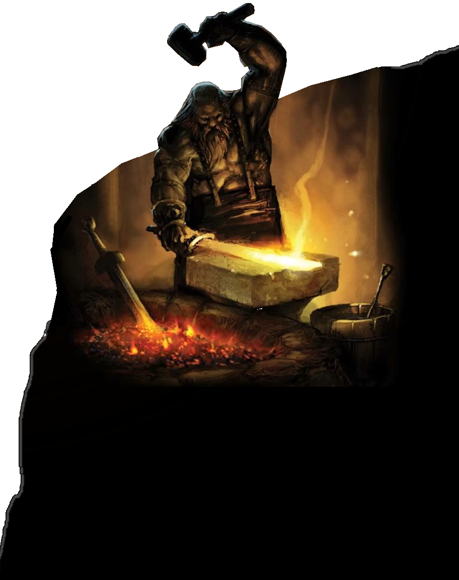 Not every smith has the mental aptitude for magic, nor every sage the strength for metalwork. Many expert creators of magical weapons and armor shy away from the heart of the forge, instead preferring to have the nonmagical base item given to them so they can work on it from the comfort of their own workshop. Smiths with no aptitude for the arcane magic, or even those clerics of the forge, gifted with divine power over metal, do not suffer the same result as metallurges. A true metallurge combines the formative magic of a transmuter wizard with the strength and training of an expert smith. Most adventuring metallurges regularly seek forgotten arcana and magic items, and seek to uncover the properties of both.