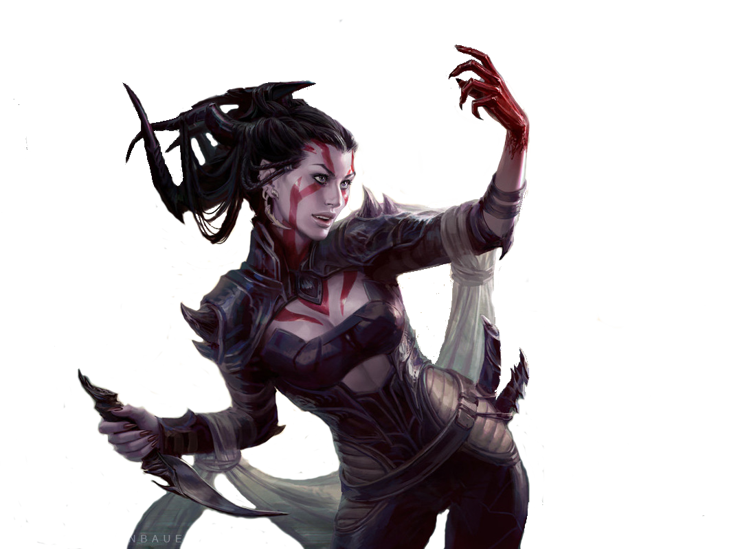 An elven woman sits at the bar, nursing a mug of ale. As the first of her pursuers kicks in the door behind her, she spins, the blood suddenly flowing from her palm forming into a blade of deep crimson. It bites deep into the unprepared man's shoulder, his eyes wide with surprise as their supposedly unarmed target suddenly becomes the last he'd ever hunt.
