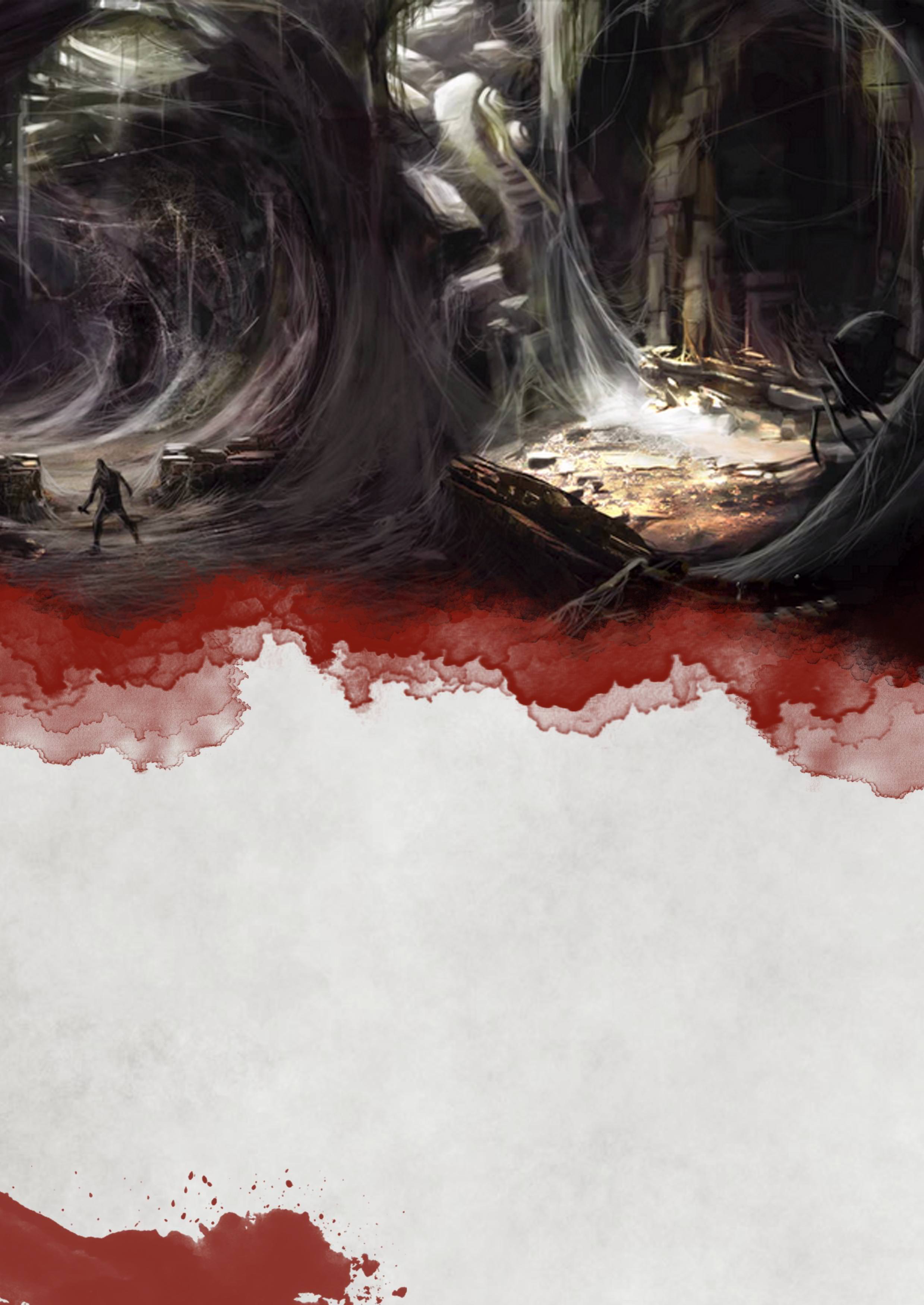 The smell of acid and rotting meat wafts from a drachanid's mouth; the last remnants of its previous meal. Its drab and colourless body, covered in carapace and tiny hair follicles, allow it to blend in seamlessly with its constructed surroundings of web and darkness, whilst affording it with an increased range of mobility. It lies in wait, eight eyes focused in every direction, for the slightest quiver of its spun web, for the moment when its unwitting prey stumbles and finds itself in its trap; paralyzed, bound and conscious until the very moment when its insides turn to liquid and it is devoured by both the drachanid and all the spiders that makes its home within its gullet. The discarded and torn web is reabsorbed alongside its unfortunate prey, ready to be spun and used again to create the trap for the drachanid's next unsuspecting meal.