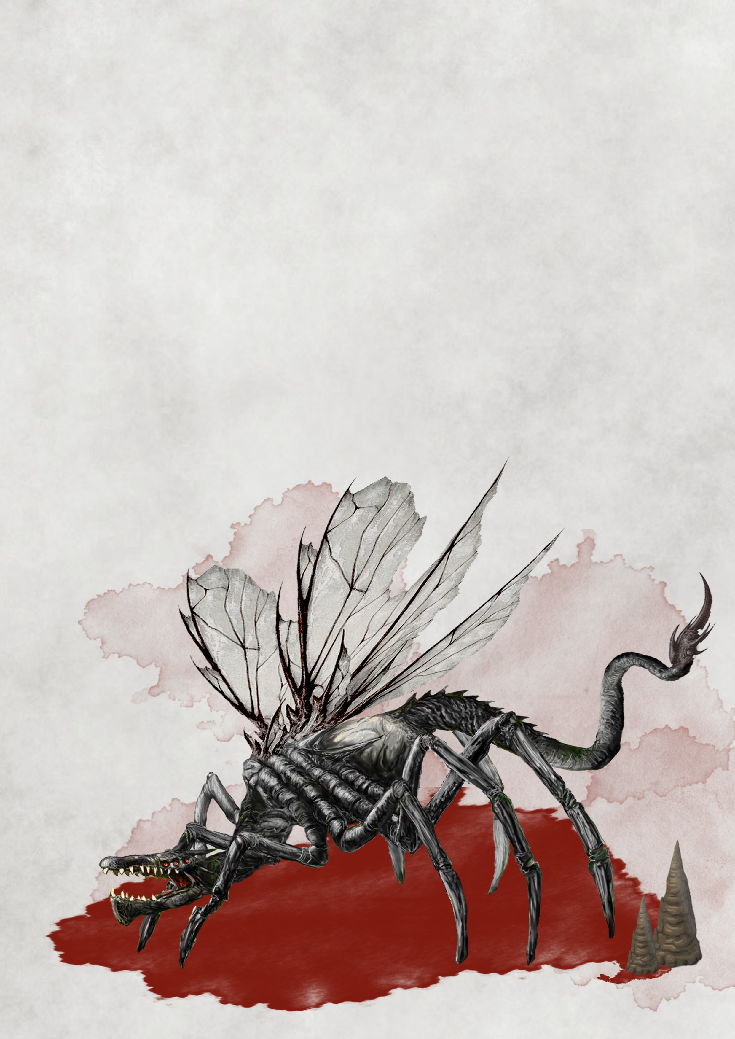 - Bone Devil by Filip Burburan of Wizards of the Coast (Art found within WotC Monster Manual, page 71), for the wings and tail stinger.
