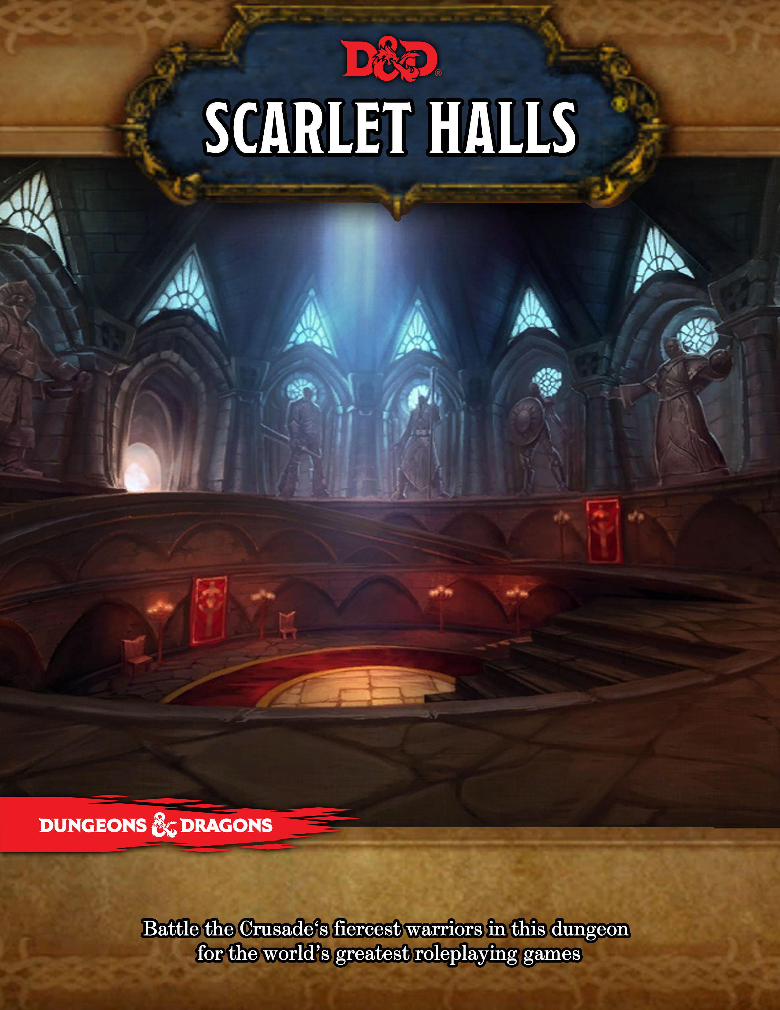 Scarlet Halls is a dungeon designed for characters from levels 5 to 6. It is meant to be standalone and can be inserted into any campaign.