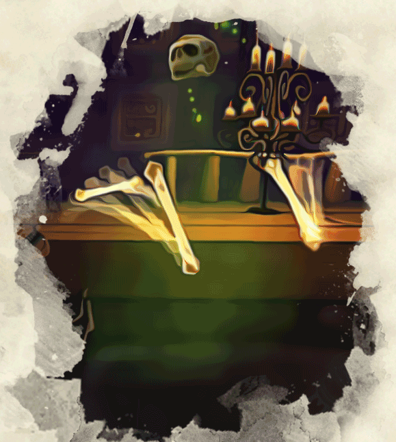 The second building looks to be a former blacksmith but has since been filled with refuse of many sorts, likely originating from within the Scholomance. Oddly, this garbage has been impeccably catalogued and sorted. If the adventurers have the Spectral Essence, they can see and speak with the town's resident Waste Management Specialist, Joseph Dirte. The long-winded ghost is always happy to talk trash with anyone who will listen. For every 30 minutes someone speaks with him, they may make a DC 15 Investigation check to learn about either Rattlegore, Doctor Theolen Krastinov, or Professor Slate.