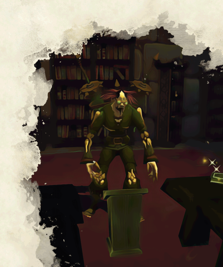 The school's headmaster must die if the Scholomance is ever going to be cleansed. The Darkmaster's Study is deep within the crypts. Once Gandling has been defeated, the Talking Skull will reveal its true identity, the spirit of Lord Alexei Barov. In return for their service, Alexei will open the Barov Family Vault to the party.