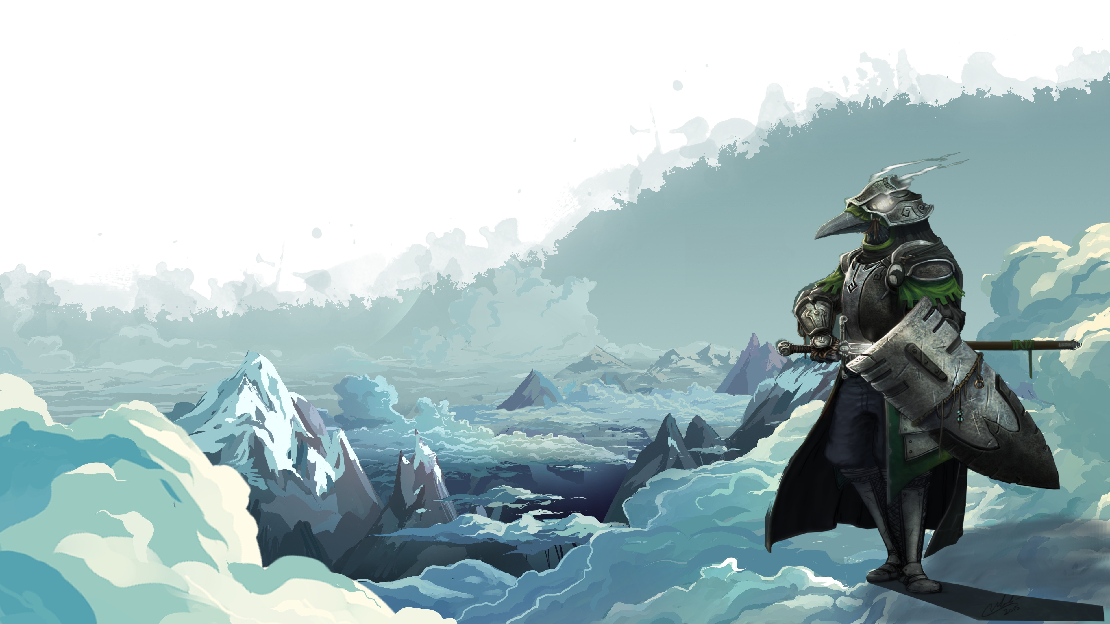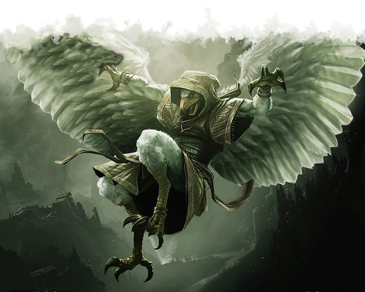 Oath of the Wing Seeker: Kenku art by Colby Marchi and cloudscape from walldevil.com