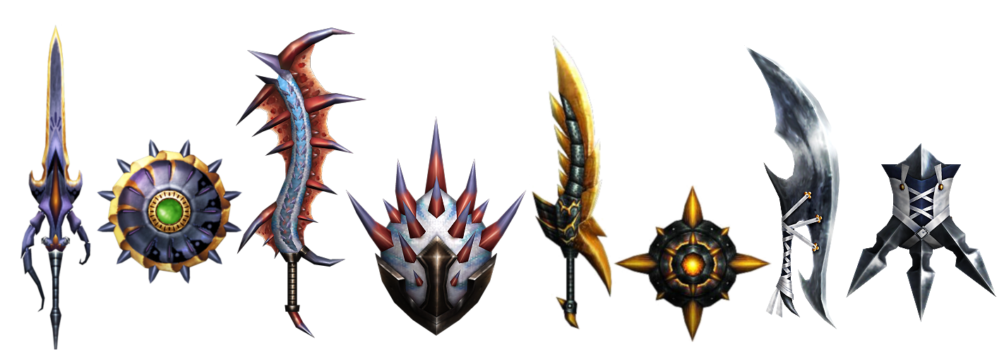 Dual blades unleash a whirlwind of combo attacks on your enemy. Though they're lightweight and relatively simple to use, they cannot be used to guard.