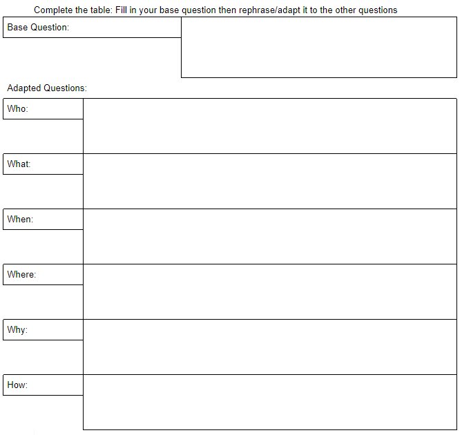 | 4. Identify the ways your texts - your evidence - answers your rephrased questions |