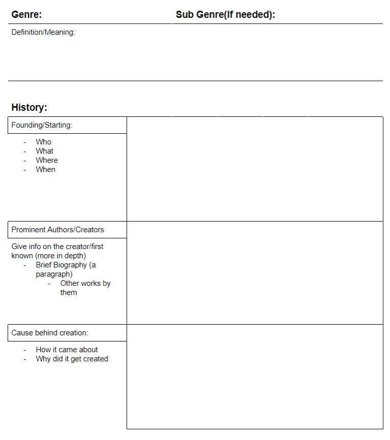 - You wantt o maek sure that you have a good, basic understanding of your Genre, and the texts you select below are meant to assist with that