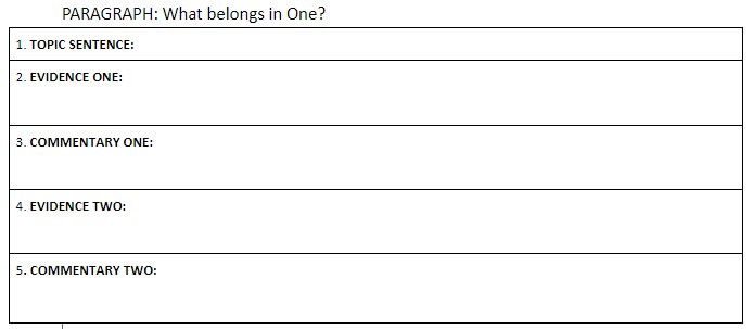 To further assist you, Task 3.2 is designed to take what you have from Task 3.1 and turn it into an outline. There is also a graphic organizer of what a paragraph should look like, taking some guidance from the quote analysises that you have worked on.