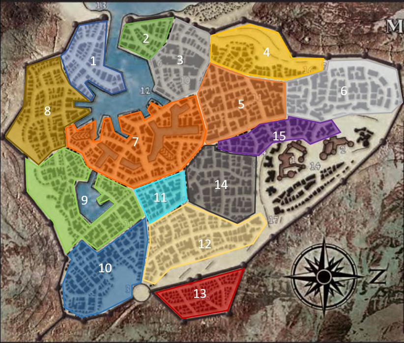 monopoly over services and trades, then broken into sixteen “Holds” at an auction for the remaining nobility to vie for. Every noble family that wins a Hold must pass it to its most capable members, who are required by law to cut all ties with their original family and become an independent ruler within their own domain. Inevitably, this rule is often ignored behind closed doors. Continuing the centuries- old tradition, these rulers are still called “Blades” but are no longer indentured to the noble families. Instead, they are seen as extensions of the High Blade’s full control over each aspect of city life. By the