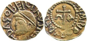 Above: This gold coin, the þrymsa was made in imitation of old Roman coins.