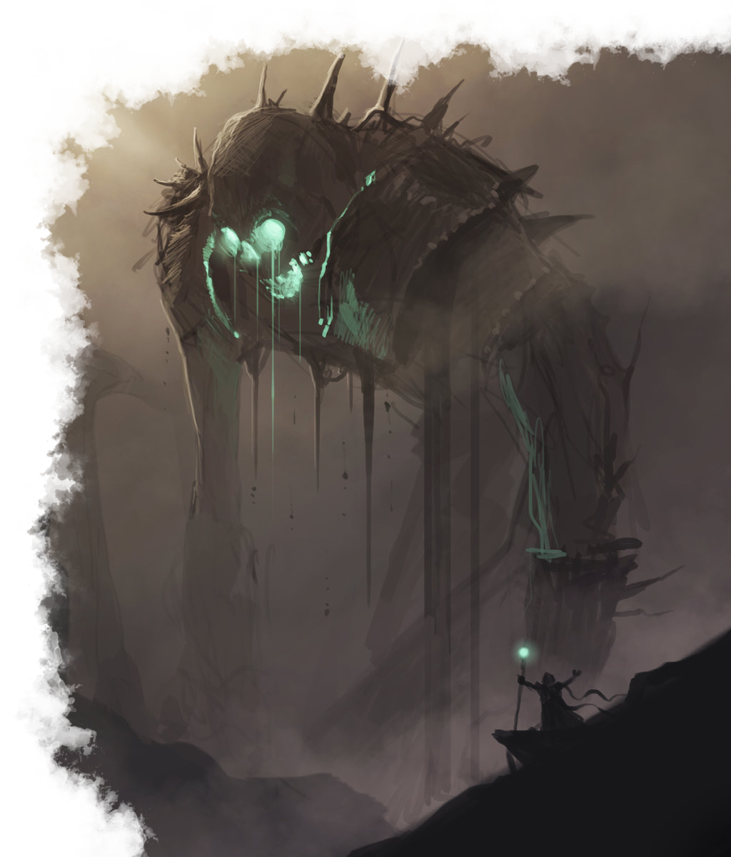Seeing an Ogre’s giant club about to come down on him, a tired warrior closes his eyes and awaits death. A howl sounds, and the fighter opens his eyes: he sees the giant flailing around wildly, grasping its face. Standing behind it is a mischievous Gnome, grinning through his beard, holding an open tome.
