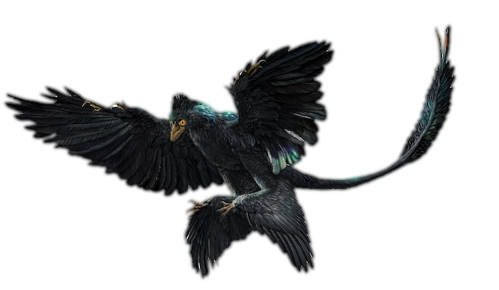 These tiny dinosaurs where among the first to fly. They use their flight to chase insects and other small prey, killing it with their sharp teeth and claws. While these claws might not kill a larger creature, they can definitely scar it with ease. With their dark plumage, they are often mistaken for crows and ravens from a distance.