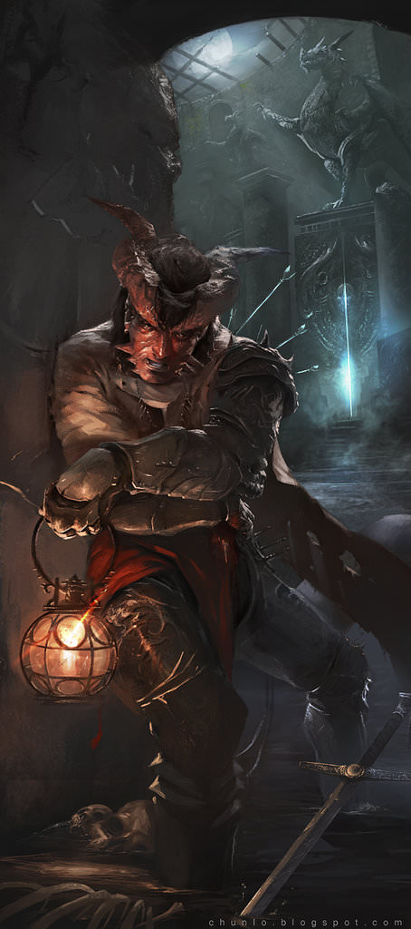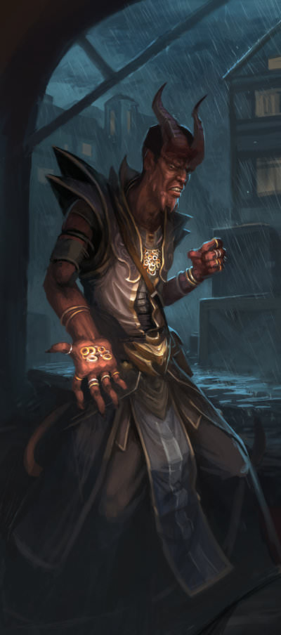 | Tiefling | Tieflings are derived from human bloodlines, and in the broadest possible sense, they still look human. However, their infernal heritage has left a clear imprint on their appearance. To be greeted with stares and whispers, to suffer violence and insult on the street, to see mistrust and fear in every eye: this is the lot of the tiefling. |