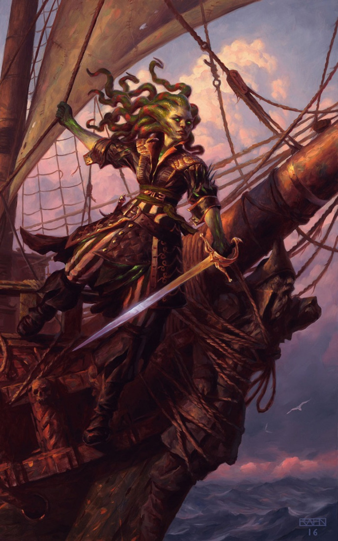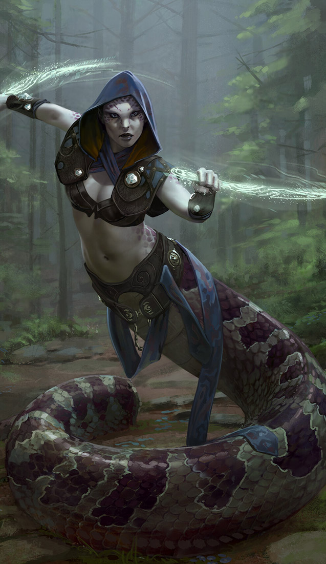 | Elapidae | Elapidae are a serpentine race of unknown origin, making their home in only the largest oceans and longest shores. They are humanoid from the waist up, with scaly skin, a lizard-like head and long tails. |