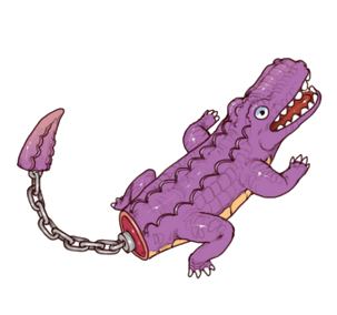 This flail has a living magical Tiny alligator instead of a ball to swing. When you hit a creature with this flail, it must succeed on a DC 15 Strength saving throw, or be restrained, and you cannot use the flail again until you release the creature (no action required). The target or another creature within 5 feet of it can use its action to repeat the saving throw, ending the restrain on a success.