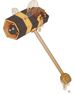 This maul has a living bee inside of it, flapping wings, and is covered in honey. You cannot unwillingly be disarmed of this weapon.