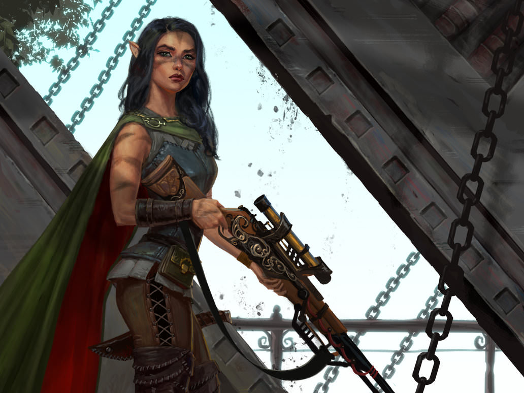 Holding her breath, the elven ranger tracks an gnoll warband through the scope of her bolt-action elven longbarrel. She carefully studies their warpaint, the particular feathers in their headbands and the weapons they carry. Red Teeth tribe, she thinks to herself. Headed for Sandstone. She mutters a brief incantation and squeezes the trigger. A gnoll is blown away in a violent spray of red but before he even hits the ground, the elf has cracked the bolt action of her sniper rifle to reload, and fires off another shot.