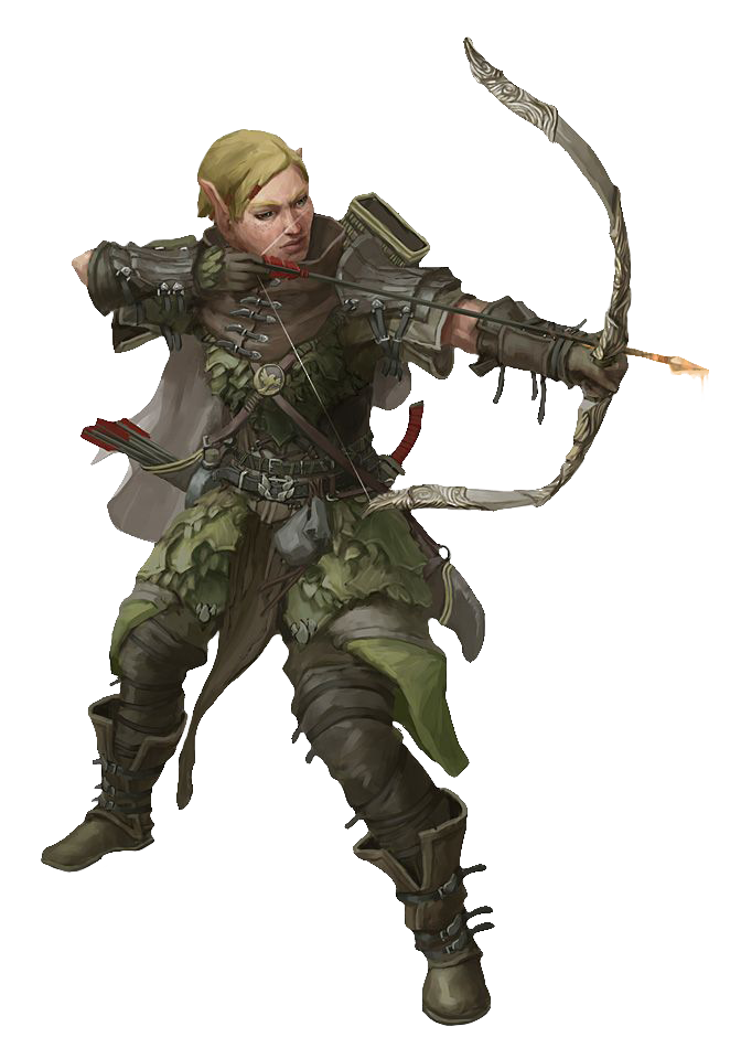 Holding his hand high, a half-elf whistles to the hawk that circles high above him, calling the bird back to his side. Whispering instructions in Elvish, he points to the owlbear he's been tracking and sends the hawk to distract the creature while he readies his bow.
