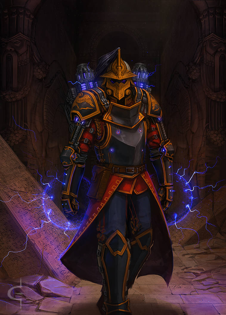 - "Sketch no. 332 Warforged Wizard" by Olieart