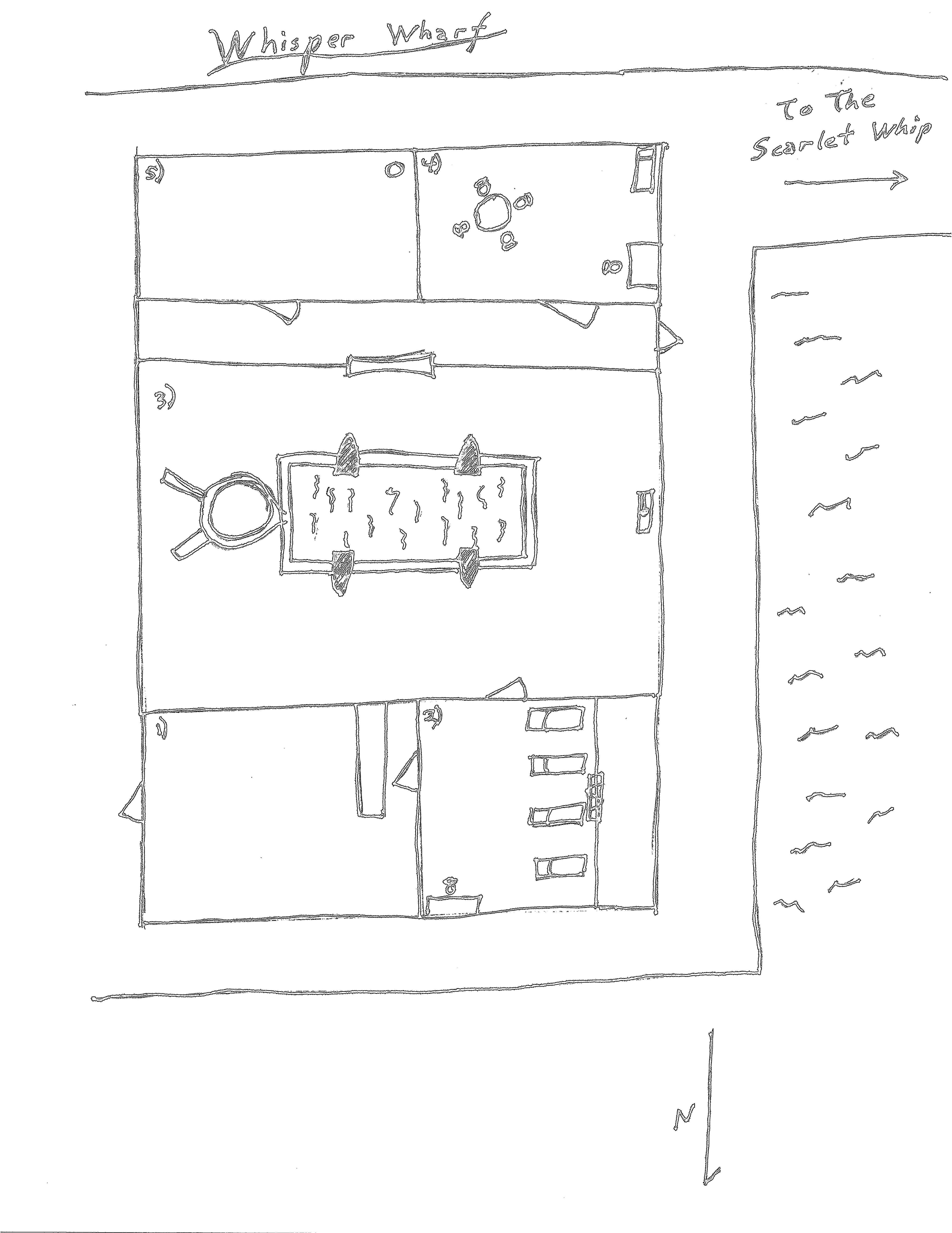 There are only a few ways for players to find the location of Whisper Wharf. One is to talk to Phenry here. Other options include tracking Pixiebelle's captors or interrogating them (or other slaver prisoners). Pixiebelle herself knows the location, though not by name (see the note on the next page).