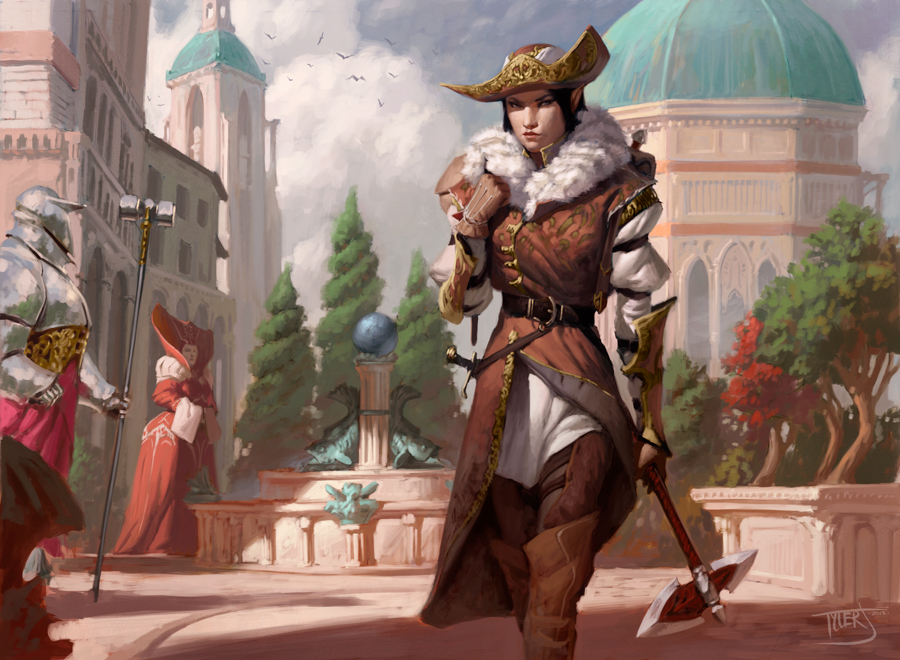 Fighters fill the ranks of Fiora's City Guard and other military arms. At the moment, they are split between the proper rule of law with Adriana Vallore, or the more lucrative and higher station of those who side with Queen Marchesa. Most Fighters could be any Martial Archetype save for samurai. Fighters loyal to Marchesa may be more likely to be Eldritch Knights, being former spies and assassins.