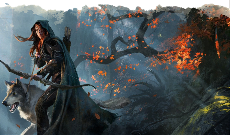 Holding his hand high, a half-elf whistles to the hawk that circles high above him, calling the bird back to his side. Whispering instructions in Elvish, he points to the owlbear he’s been tracking and sends the hawk to distract the creature while he readies his bow. Far from the bustle of cities and towns, past the hedges that shelter the most distant farms from the terrors of the wild, amid the dense-packed trees of trackless forests and across wide and empty plains, rangers keep their unending watch.