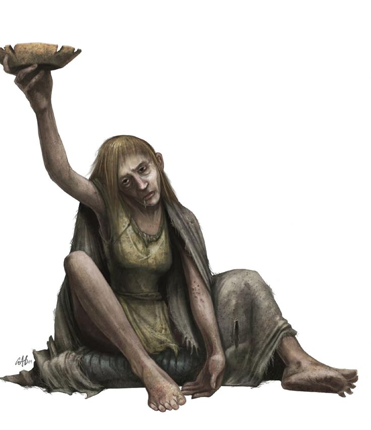 The Warrens welcome no one. The labrynthine ghettoes wind their way around Glasspeak, which looms far above. The high black walls of the Warrens are coated in a thick carbonic sludge built up over years of poverty and industry. Beggars and theives line the streets and shadows. While the Warrens house many, they are home to none.