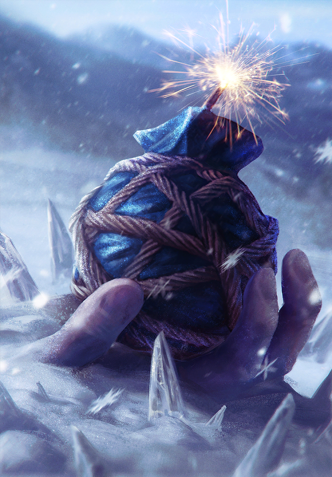 When lobbed up to 30 feet as an action, the bomb detonates releasing freezing cold gas in a cloud of radius 10 feet. Creatures that enter or start their turn in the cloud take 1d8 cold damage, or half as much on a successful DC 14 Con save. Creatures that take this cold damage have their movement reduced by half until the end of their turn. The gas disperses after 1 minute.