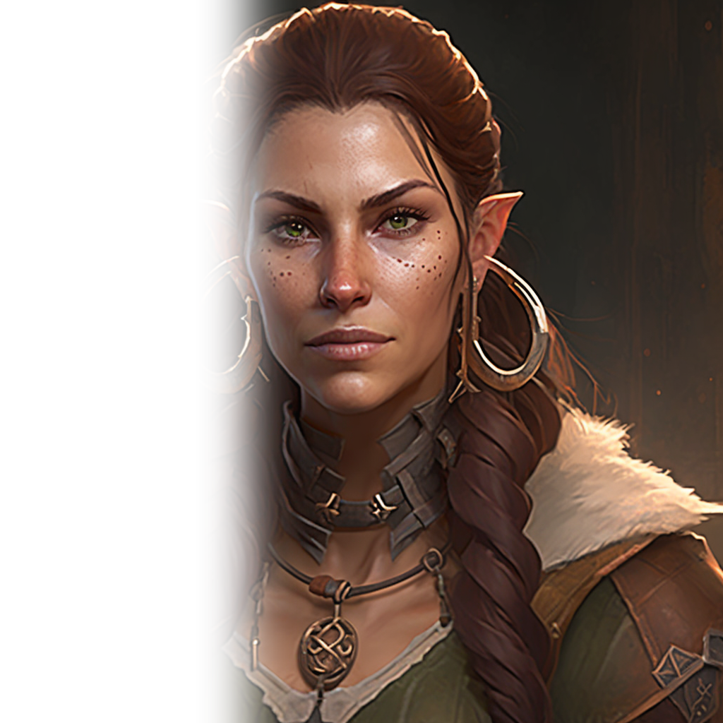Marcella, aka Lady Luster. An aged muscular and pot bellied female Human Archmage born to a dying mother and a drunk father in Luskan. She traveled across the northern wastes with barbarian tribes as a medicine woman and dresses functionally in furs and leather. She is well spoken and says city folk are the real savages.
