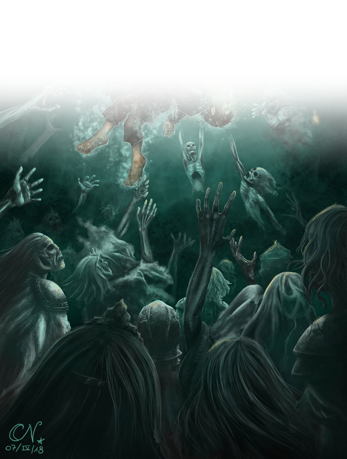 Whelm. Each creature within the swarm's space must make a DC 20 Strength saving throw. On a failure, a target takes 21 (6d6) necrotic damage. If it is Huge or smaller, it is also grappled (escape DC 20). Until this grapple ends, the target is restrained. If the saving throw is successful, the target is pushed out of the swarm's space.
