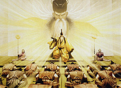 On the plane of Kamigawa, the people exist in a balance with their gods, the spiritual kami. The land itself shows a sign of balance as the sources of land with mana are balanced and organized. The people themselves are strong believers in a sense of honor, a code of conduct which they ascribe themselves to. Some ascribe to the code of bushido, others to a sense of freedom, and others to high high standings of behavior. Honor is the most sacredly held rule, even if not everyone has the same interpretations of it when they conduct themselves. Honor drives many people and many often come to blows over it, all under the watchful gaze of the kami who guide and protect the people.