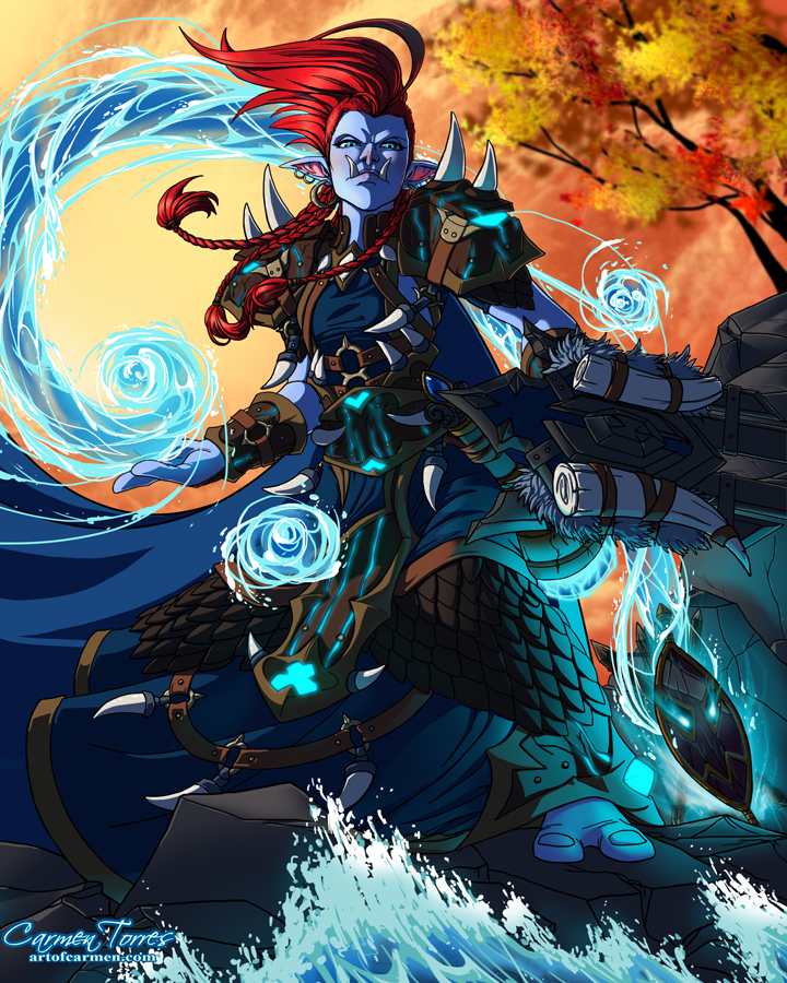 Shamans are mediators between the mortal world and the elements. They often act as spiritual guides and witch doctors in their communities. They are able to call to the spiritual realm as well, and because of that, pull knowledge and traditions from generations past. They are able to fill several roles within an adventuring group. Calling water and the tides to aid and heal their allies, or imbuing their weapons with elemental fury, and even firing bolts of lightning and calling down torrents of wind and fire on their enemies.