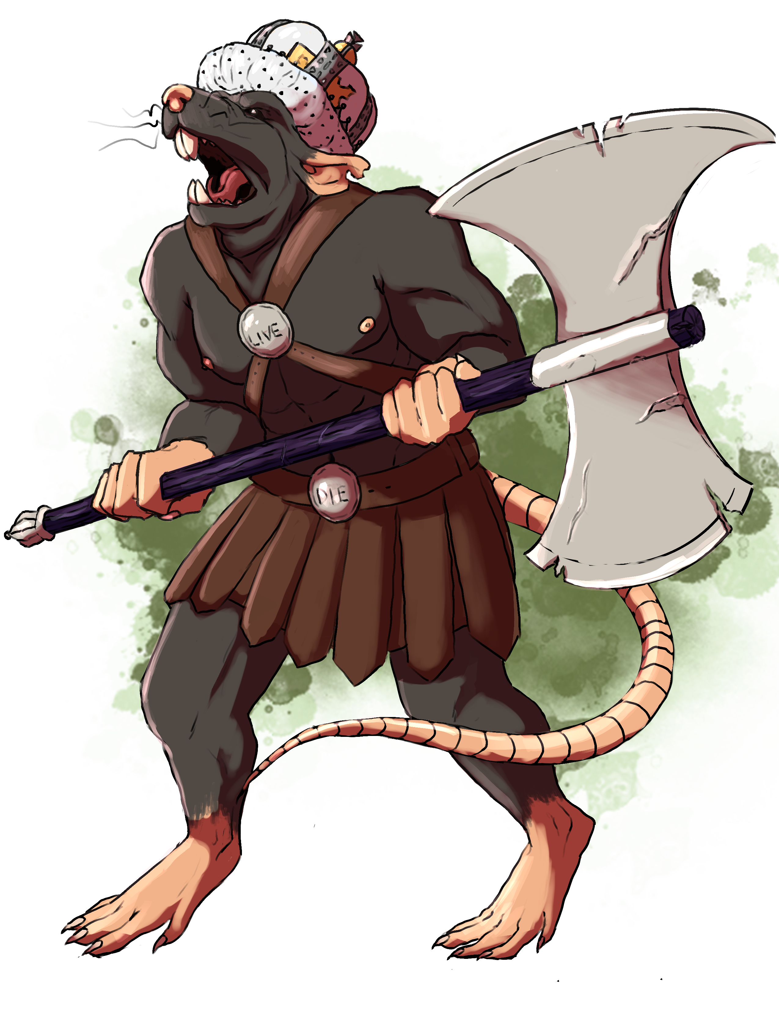 The typical barbarian that spiritually links themselves with an animal totem look to majestic animals of the wild for guidance. They may call upon the strong-willed bear, the powerful tiger, or the graceful eagle to name a few. But what if one never encountered creatures such as these in their lives? What if they were adventurers that started living on the streets of impoverished cities, or in the back alleys of shady establishments? What if their only company in these dire times were the rodents that infested the nooks and crannies of the walls and floors? Adventurers like this might have chosen to channel their rage via the rat, obviously.