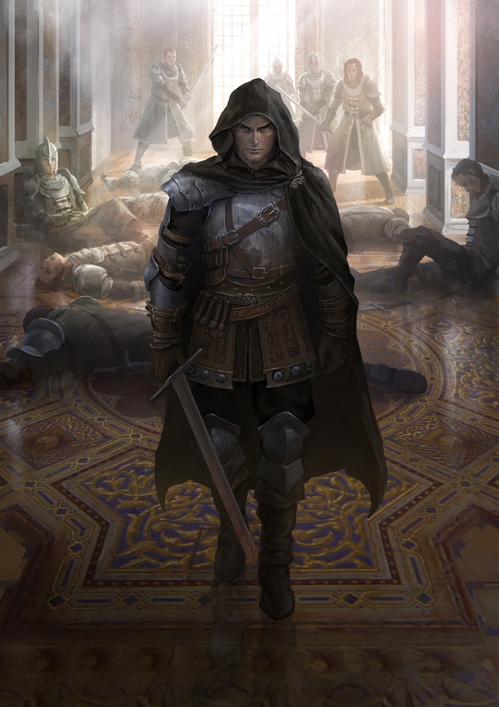 Stepping past a cowering guard, a dwarf strides boldly onward through the dingy back alley. Behind him lies half a dozen battered men, bandits that would dare stand between him and his quarry.