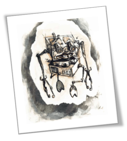 In Athena's Gauntlet, the room is full of modified Modrons (see below). Describe them as being metallic constructs carrying a bronze spear and a helmet, with fins and flippers made from stretched hide.