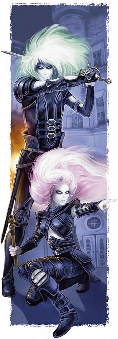 Aetherborn are a strange living by-product of the process of aether refinement, cast in humanoid form but lacking any of the biological qualities of other races. They don’t eat or sleep, and they don’t reproduce—nor do they have any physical sexual characteristics. Language that categorizes people into male or female categories thus breaks down when it comes to aetherborn. Most aetherborn prefer that others use the pronoun “they” to refer to them, since it doesn’t attribute a gender that they don’t possess. Only a relative few prefer “he” or “she,” having chosen to adopt a gender.