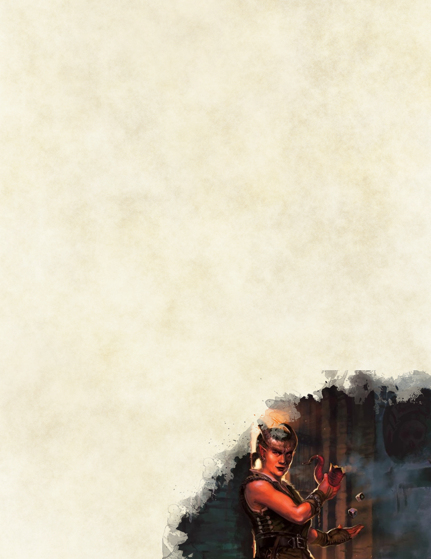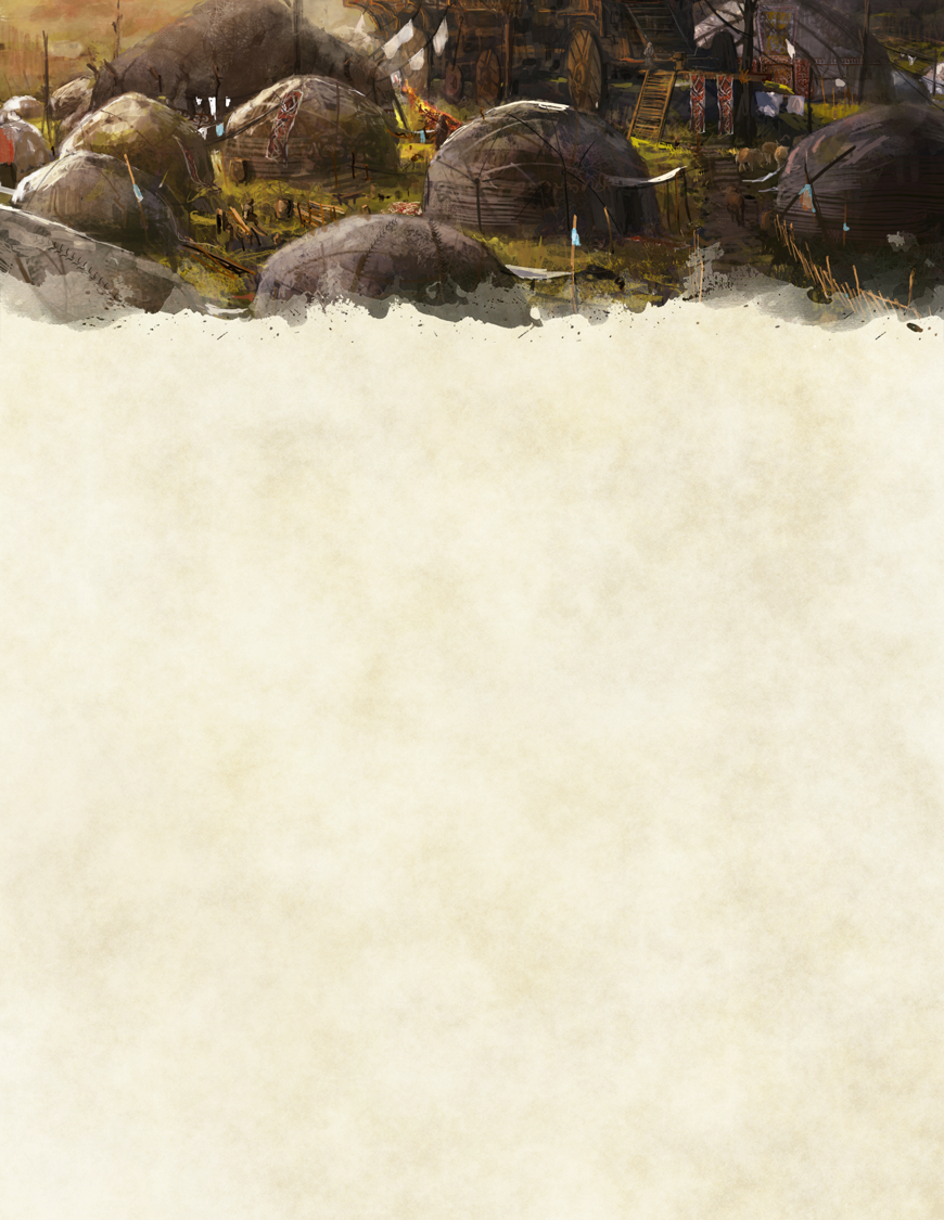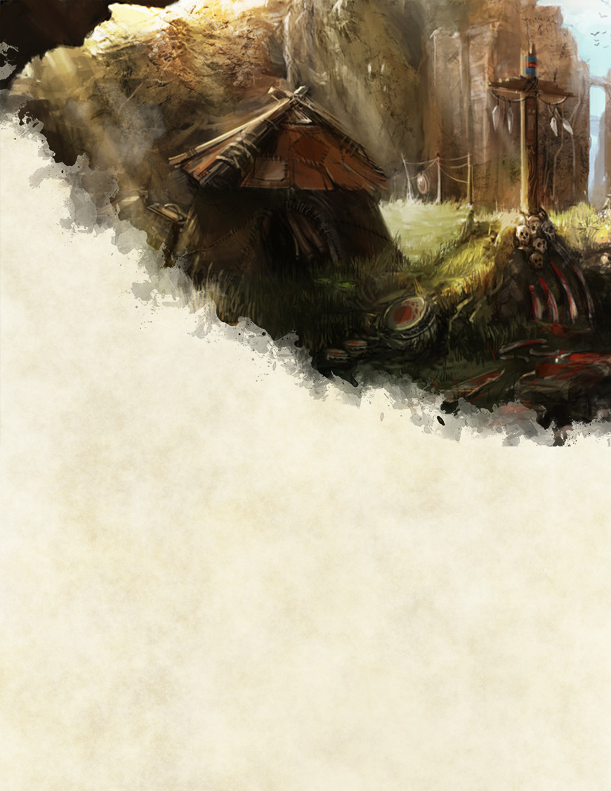 Deeply reverent of the land and its sacred sites, the nomadic kor live a spare existence defined by their constant travels. Masters of ropes and hooks, they scale sheer cliffs and cross yawning chasms with such skill and agility that they sometimes seem almost to take flight.