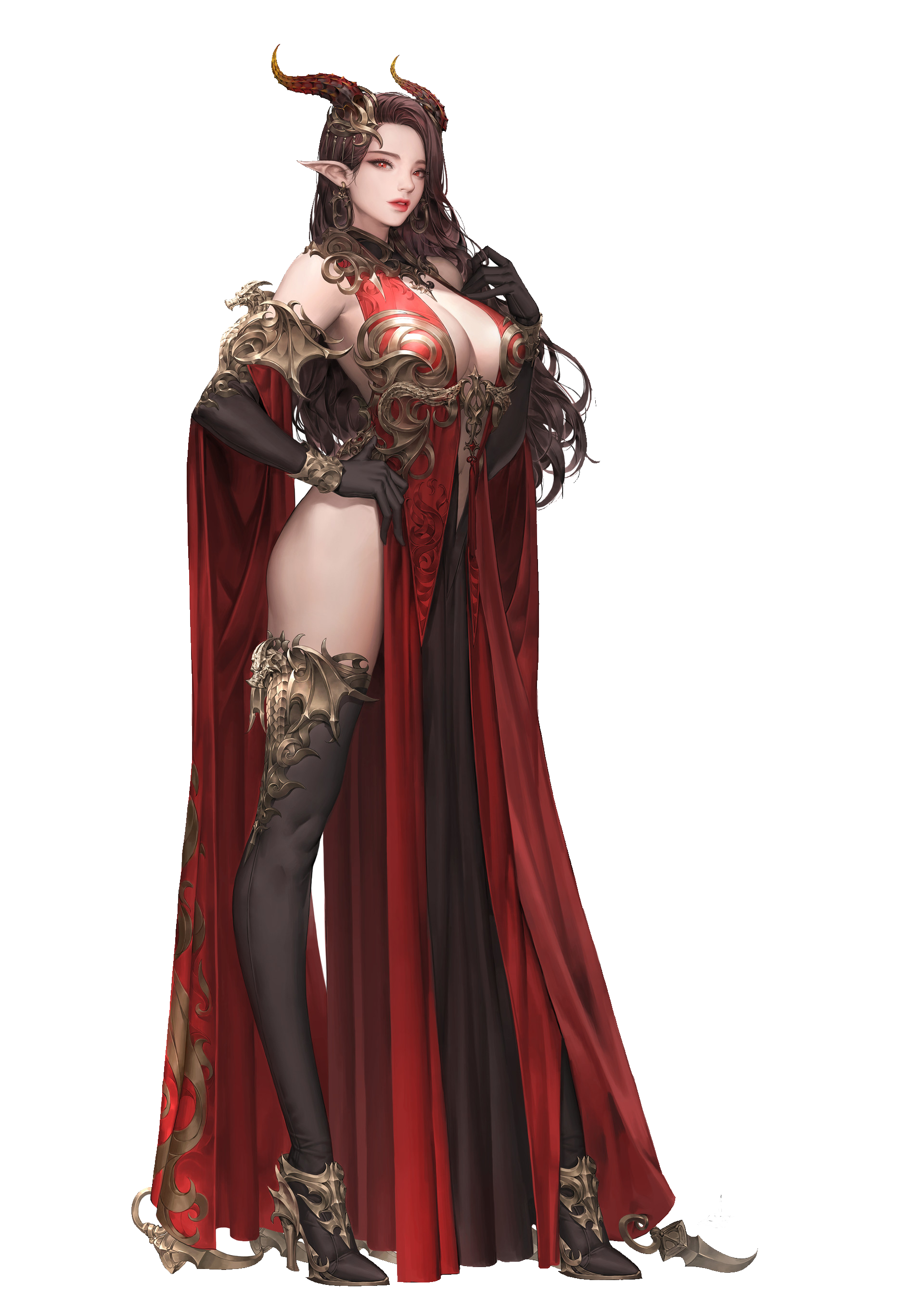 Iona is depicted as a woman with orange hair like the sunlight. She wears a warm grin that would unfurl even the hardest of hearts along with transluscent, ornate robes revealing a svelte alabaster figure underneath. Though if they were to look into that amber gaze, they would see a flicker of this raw, carnal desire within them.